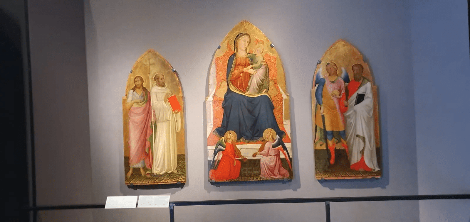 Maestro del 1416 (Firenze, attivo nel primo quarto del XV secolo) Madonna in trono con il Bambino e i santi Giovanni Battista, Bernardo, Michele Arcangelo e Bartolomeo c. 1410-1430 Tempera e oro su tavola Donazione Herbert e Silvana Kaiser, 2022