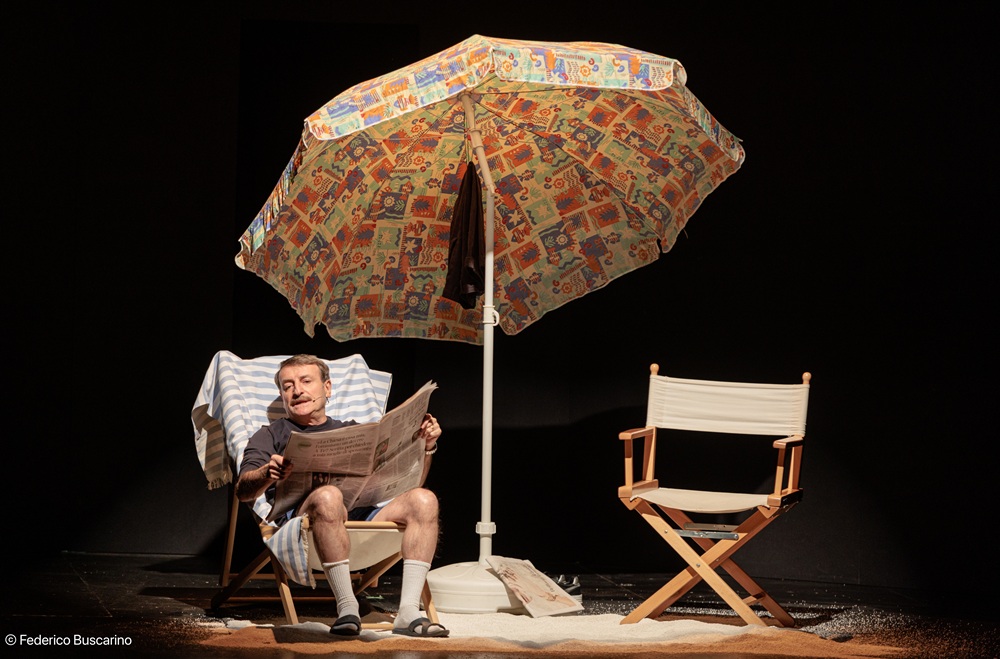 Come nel suo stile, l’attore-autore è, anche in questo spettcolo, efficace nel cogliere tutti i luoghi comuni dell’umanità per rappresentarli, esagerandoli, con una normalità in cui riconoscersi e di cui ridere. Vale per la sacca termica che contiene ogni ben di dio per nutrire la famiglia in giornata. Vale per la cura con cui si preocuppa di cospargersi di protezione solare quanto per l’astio dichiarato verso lo stesso sole, il mare e tutto ciò che caratterizza l’estate (“l’acqua mi inquieta”).
